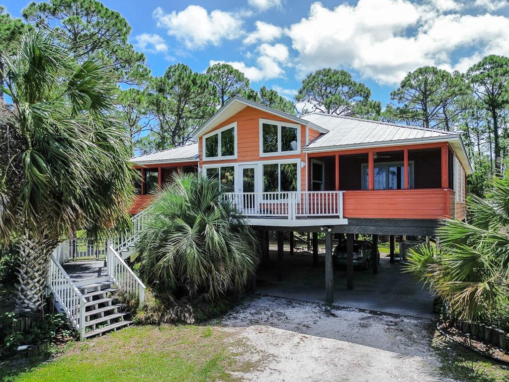 For sale: comfortable 3 bedroom/2 bath home offering breathtaking views of St. Joeseph Bay from every room. This is true coastal living with wide screen porches off the 2 main bedrooms and the kitchen where you can dine al fresco! Upgrades include an added third bedroom with custom built-ins that is currently used as an office and a well-designed kitchen with locally built custom cabinetry and pantry. Situated in a park-like setting with native vegetation and your own pond, it is naturalist' dream. Location, location: just down the road is the St. Joseph Bay State Buffer Preserve that offers quiet trails and a canoe and kayak launch. A perfect escape and only 8 miles from shopping and dining in Port St. Joe. Call today to learn more about this unique home!